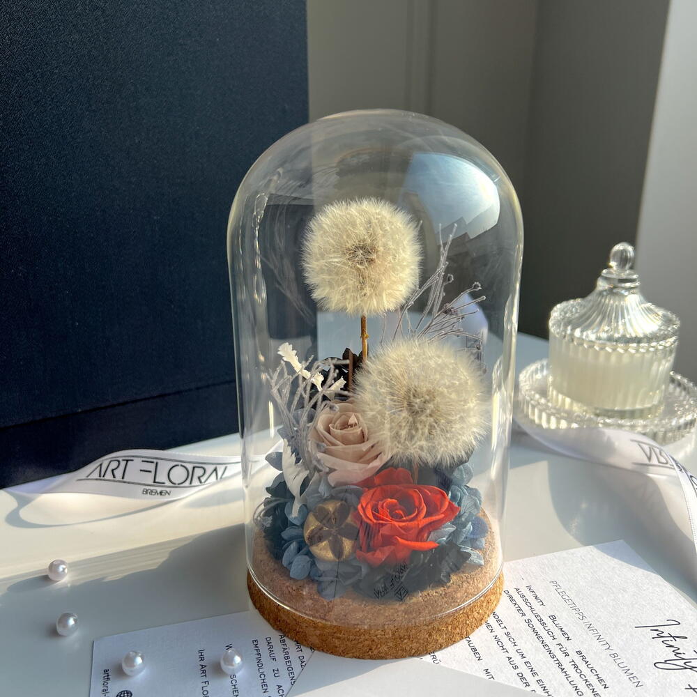 Ewiger Blumentraum in Glaskuppel