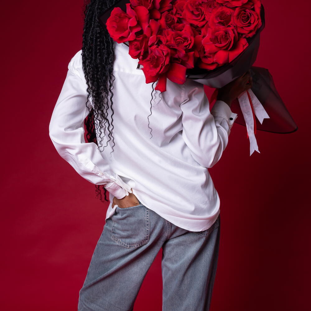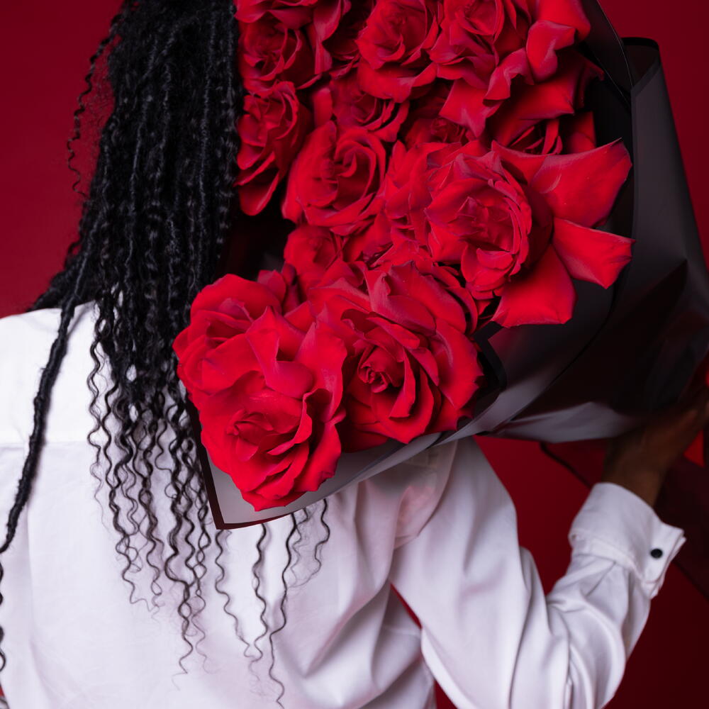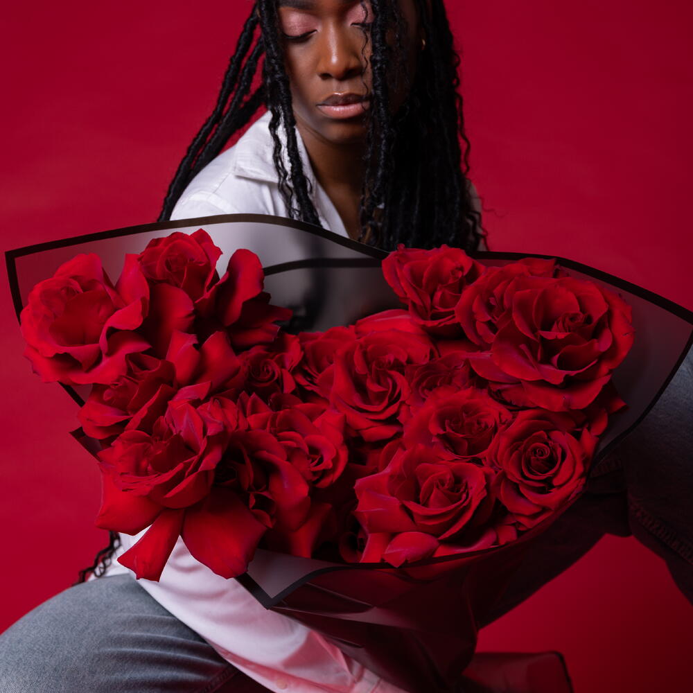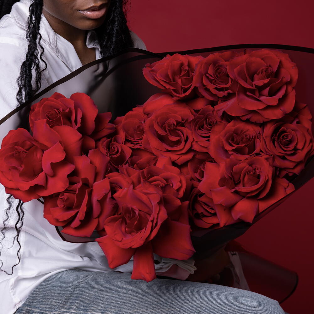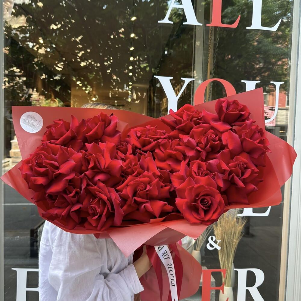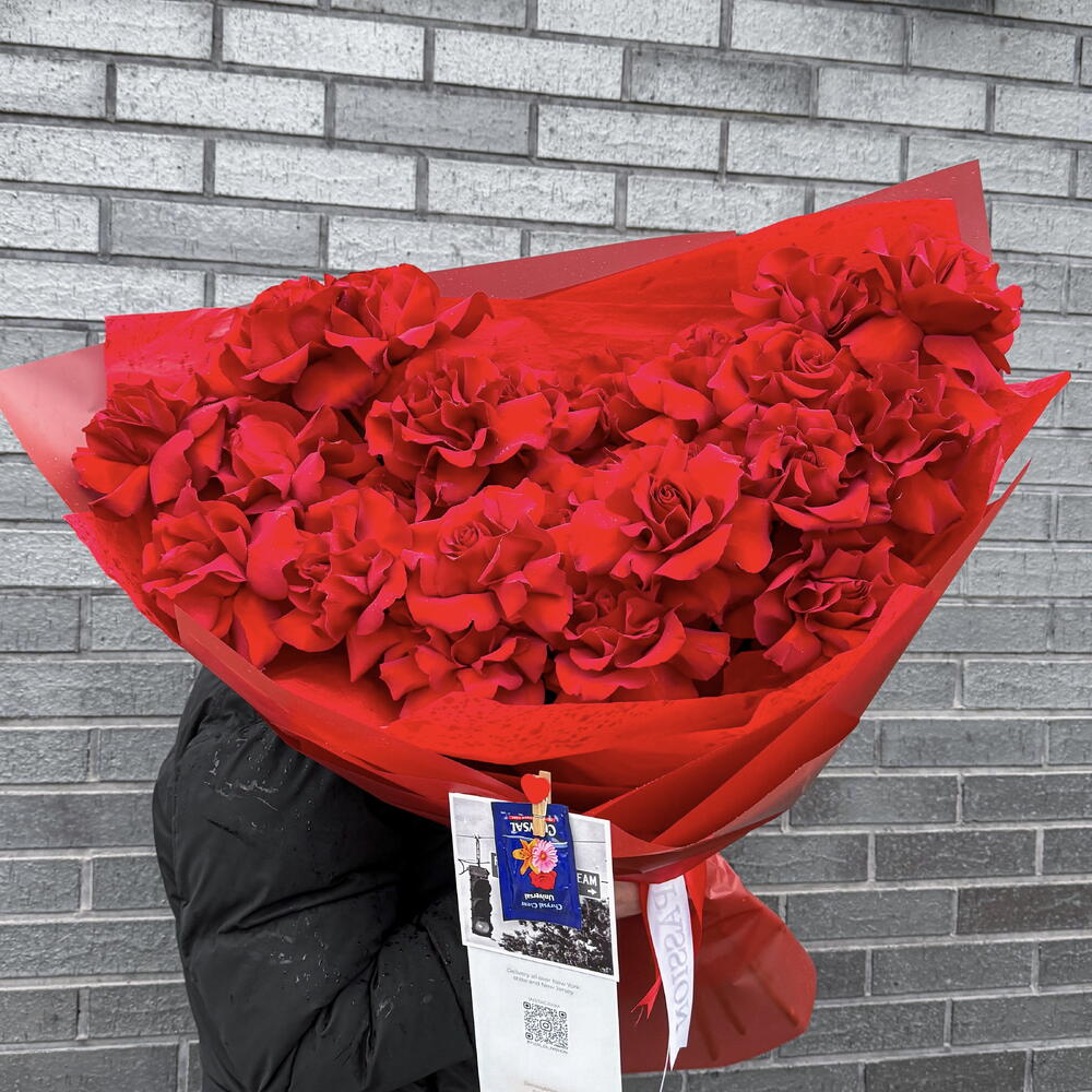 Amazing, bright, enchanted in a bouquet of spectacular lush red Explorer roses, the disclosure of which is called French! Put your innermost feelings into the flower compliment! Since all flowers are individual, just like people, the bouquet may be slightly different. But we try to repeat each bouquet as much as possible, as on the photo in the product card. Add to favorite to not lose! HOW TO CARE OF FLOWERS? Do not remove the wrapping paper from the bouquet, so then flowers will live longer Change the cold water in a vase every day Keep the vase clean Cut the stem of each flower every two days Keep the bouquet out of a direct sun, drafts and heaters Add the flower food 2-3 days after you’ve bought your bouquet (We add the flower food to every bouquet)