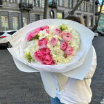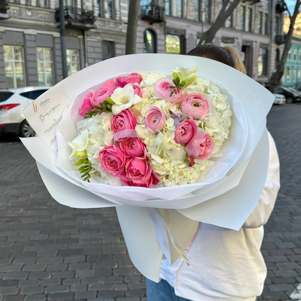 Hydrangea - 6 pcs Freesia - 3 pcs ranunculus - 3 pcs sylva pink spray rose - 3 pcs