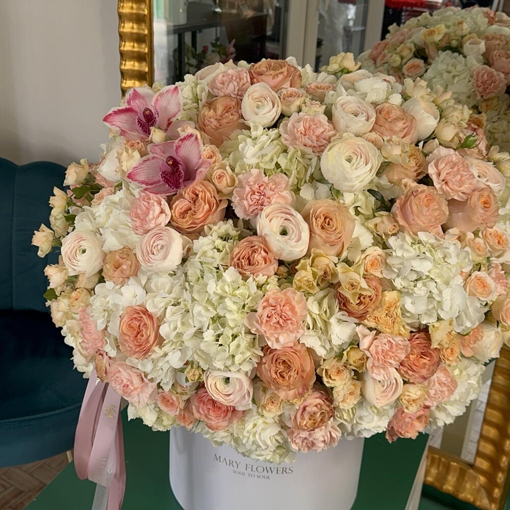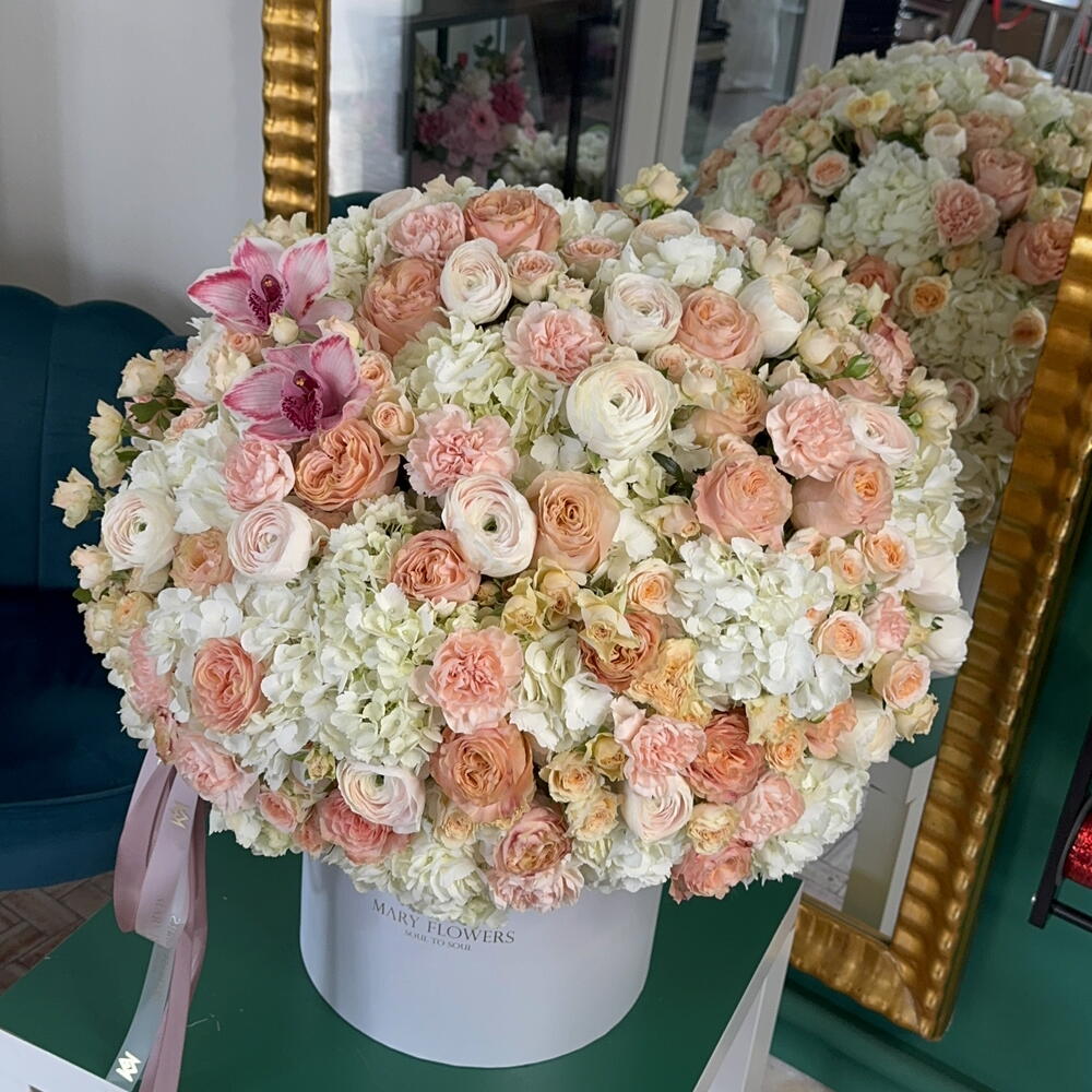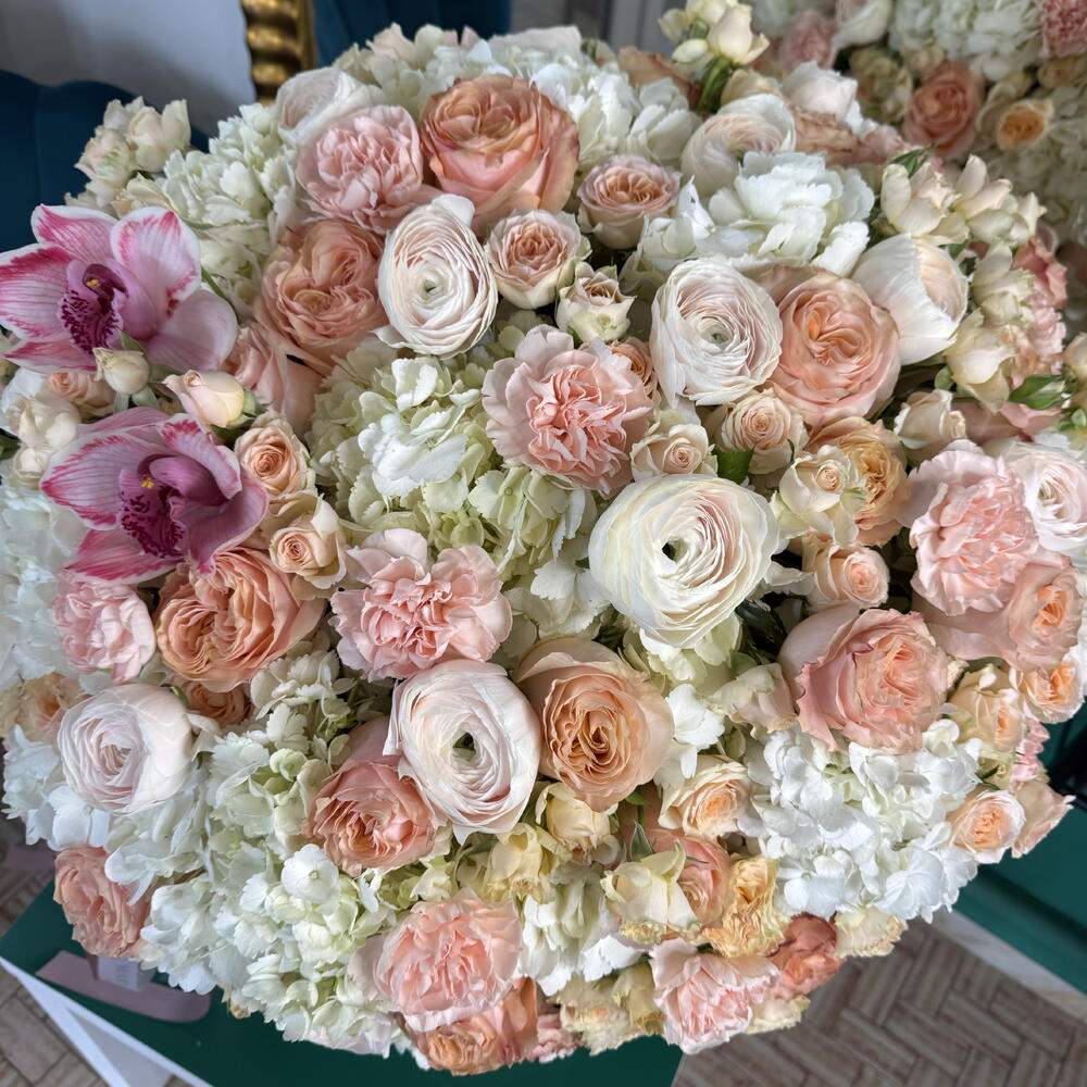 rose - 51 pcs garofani - 21 pcs ranuncoli - 21 pcs orchidee - 2 pcs rose ramificate - 19 pcs ortensie bianche - 41 pcs