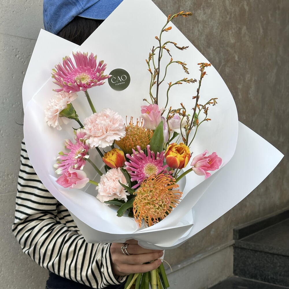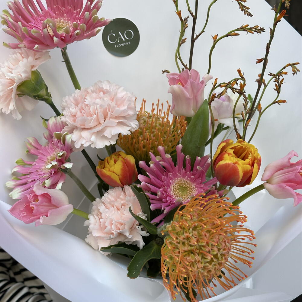 Gerbera - 3 pcs Tulip - 6 pcs carnation - 3 pcs new - 2 pcs crocosmia - 2 pcs