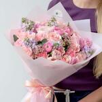 carnations - 12 pcs matthiola - 10 pcs roses - 12 pcs filler flowers - 4 pcs