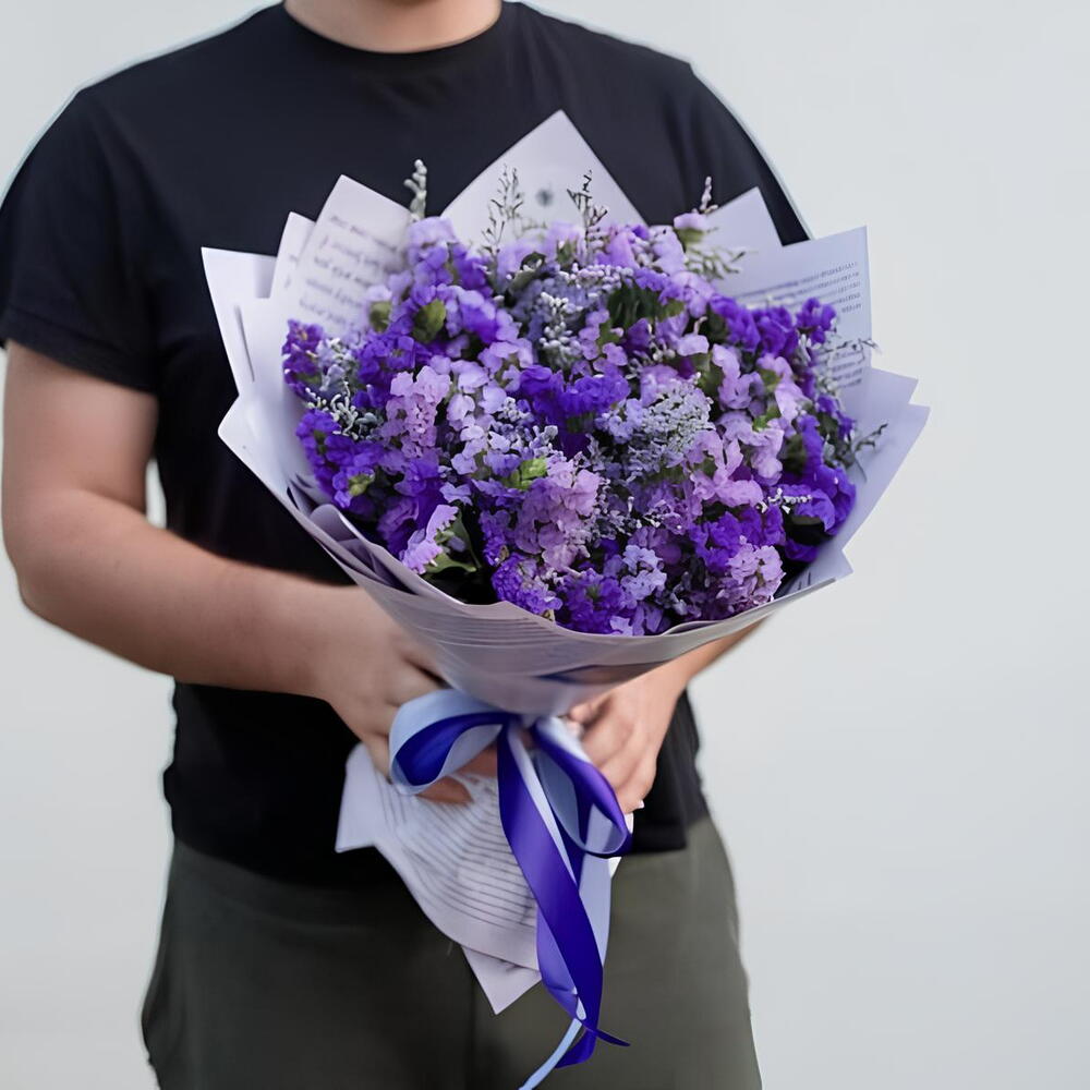 Mono bouquet of fresh flowers. can last up to 2 weeks Symbolizing enchantment and admiration, our purple fresh flower Bouquet is a thoughtful gift for various occasions, from birthdays to anniversaries or to simply express your appreciation. Its captivating beauty will mesmerize any recipient, bringing joy and a touch of regality to their day.