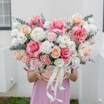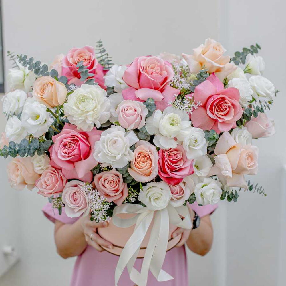 A graceful and romantic arrangement designed in a premium round box and finished with a delicate ribbon, it creates a luxurious presentation that express affection, appreciation, and heartfelt emotions. It’s perfect for romantic gifts, special celebrations, Birthdays, thank you appreciation gifts.