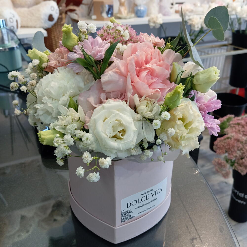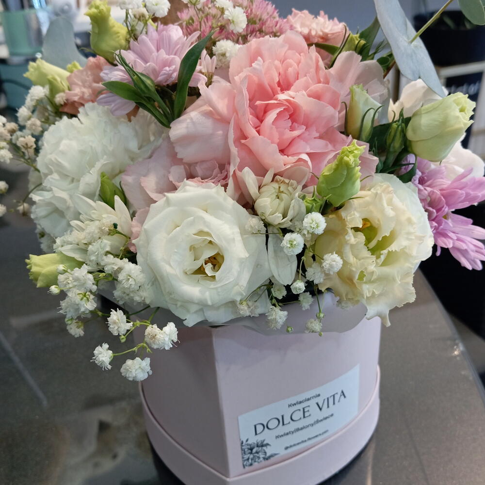 eustoma mix - 2 pcs flower accessories - 3 pcs hryzantema mix - 1 pcs carnation mix - 4 pcs