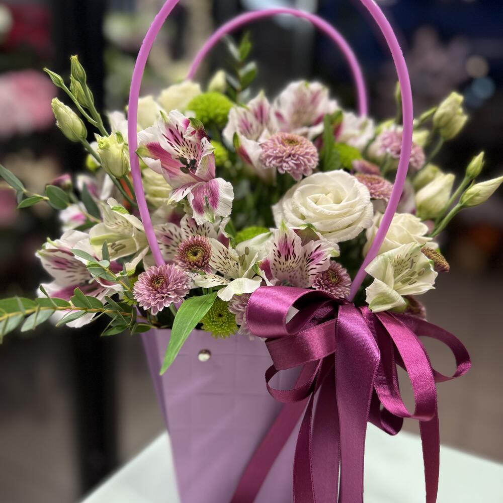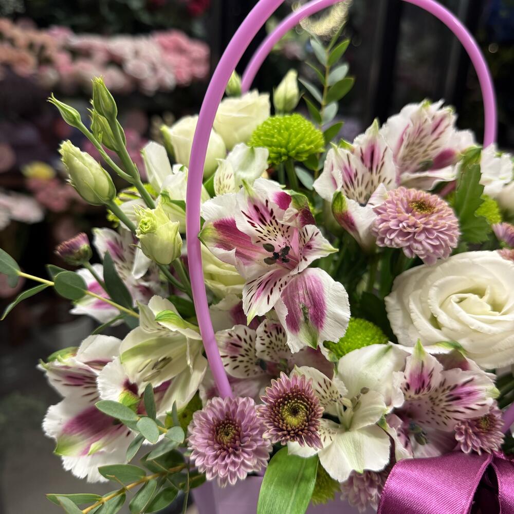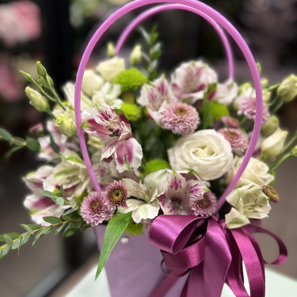 Eustoma - 1 pcs Alstroemeria - 3 pcs santini - 3 pcs