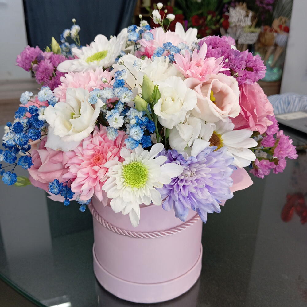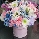 Eustoma - 2 pcs carnation - 3 pcs gypsum flower - 1 pcs hryzantema mix - 2 pcs decorative flowers - 2 pcs