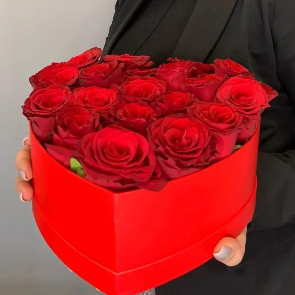 The price is given for a large bouquet of 17-19 flowers, but we make bouquets of various sizes from 7 to 27 flowers. Composition: Flowerbox made of 17-19 red roses using a special floral sponge, which keeps them from being without water.