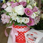 alstroemeria mix - 5 pcs rose - 5 pcs rafaello candy box - 1 pcs eustoma mix - 5 pcs