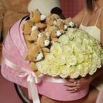Ribbon - 1 pcs Box - 1 pcs taddy - 13 pcs roses - 35 pcs