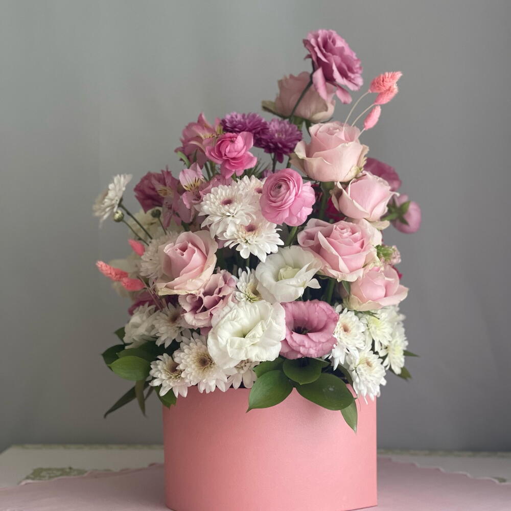 Chrysanthemum - 5 pcs Lisianthus - 3 pcs rose - 7 pcs dried flowers - 3 pcs ranunculus - 5 pcs