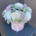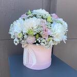 gypsophila - 2 pcs astromeria - 2 pcs carnation - 5 pcs chrysanthemum - 1 pcs chrysanthemum santini - 1 pcs yarrow - 5 pcs