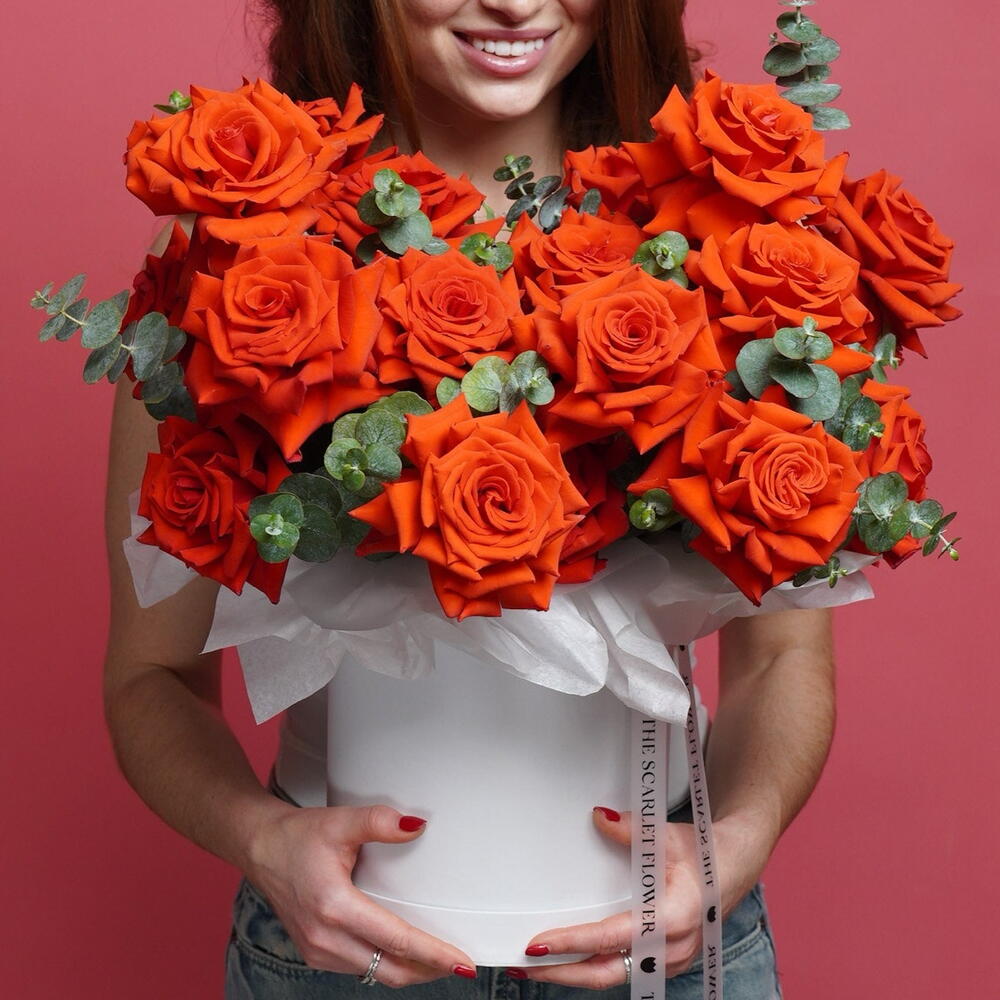 Premium French Roses in white flower box