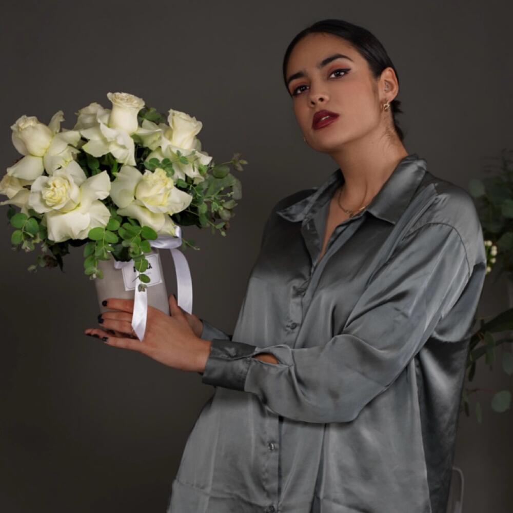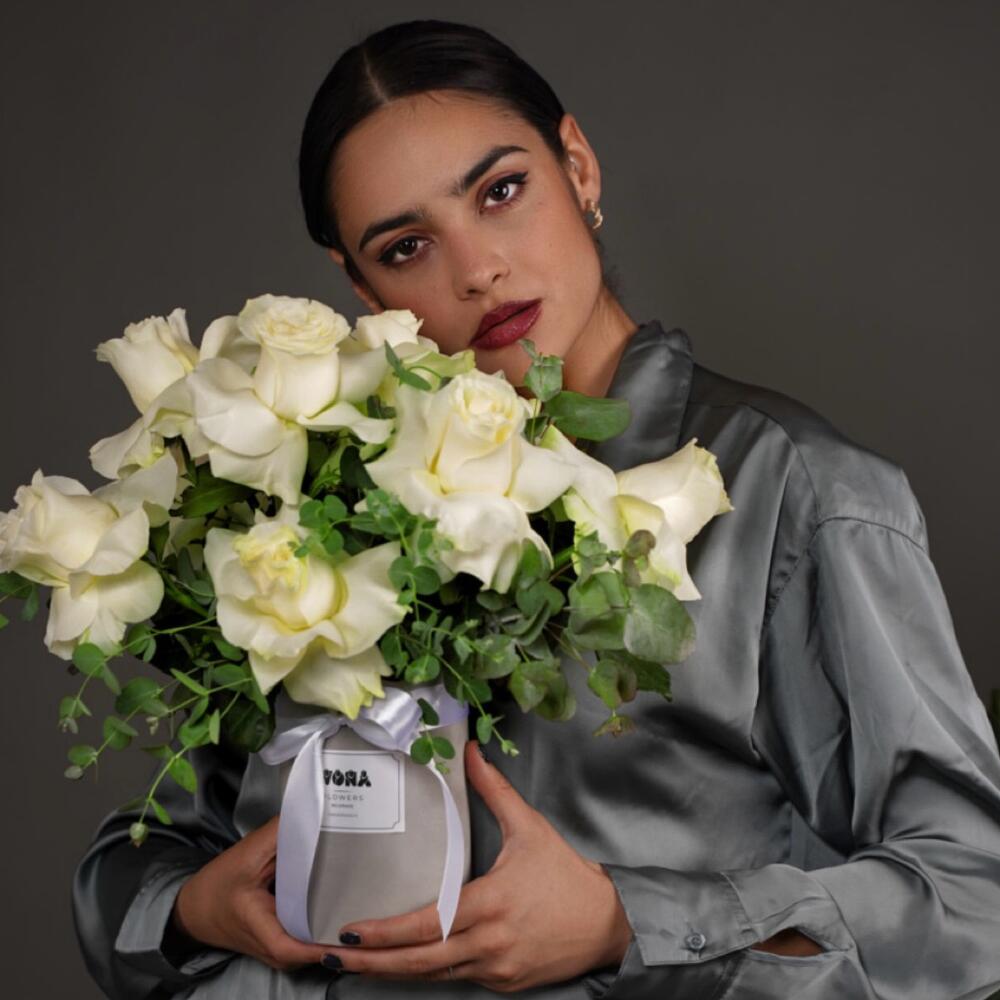 Ribbon - 1 pcs Eucalyptus - 3 pcs Box - 1 pcs roses - 9 pcs
