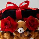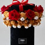 Ribbon - 1 pcs Box - 1 pcs Teddy bear - 17 pcs red roses preserved - 7 pcs