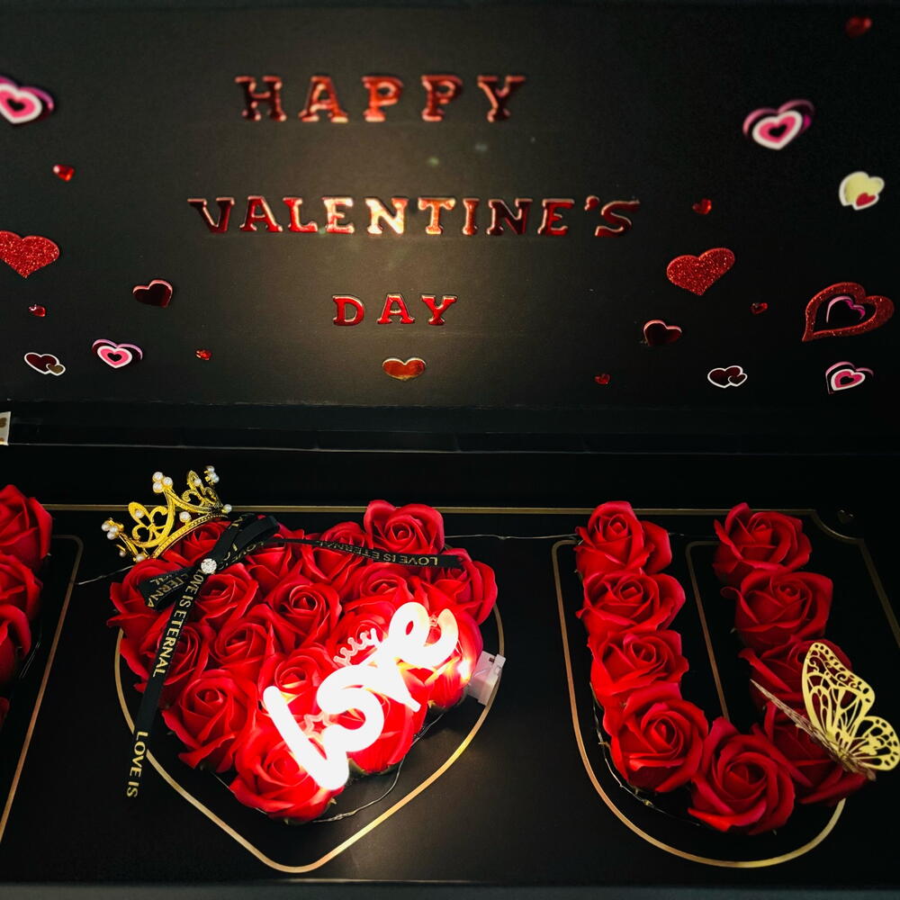 Celebrate your special occasion with this breathtaking Majestic Red Rose Box, featuring 29 luxurious red roses and a selection of elegant add-ons tailored just for you. From shimmering LED lights to charming crowns and butterflies, plus delicious chocolates, this gift is designed to dazzle and delight. Perfect for anniversaries, birthdays, Valentine’s Day, or any heartfelt celebration, customize your gift by adding a personal message inside the box and choosing your favorite extras to make it truly one-of-a-kind. Included in Your Gift: 🌹 29 Premium Red Roses – Rich and vibrant blooms 👑 Elegant Crown Decoration – A regal accent for your roses 🦋 Delicate Butterfly Ornament – Adds a whimsical touch 💡 Warm LED Lighting – Creates a cozy, romantic glow 🍫 Gourmet Chocolates – A sweet surprise to indulge in 💌 Customizable Message Card – Share your unique message 🎁 Luxurious Gift Box – Stunning and ready to impress Customize Your Gift: Add teddy bears, ribbons, or other special touches by letting us know your preferences at check out