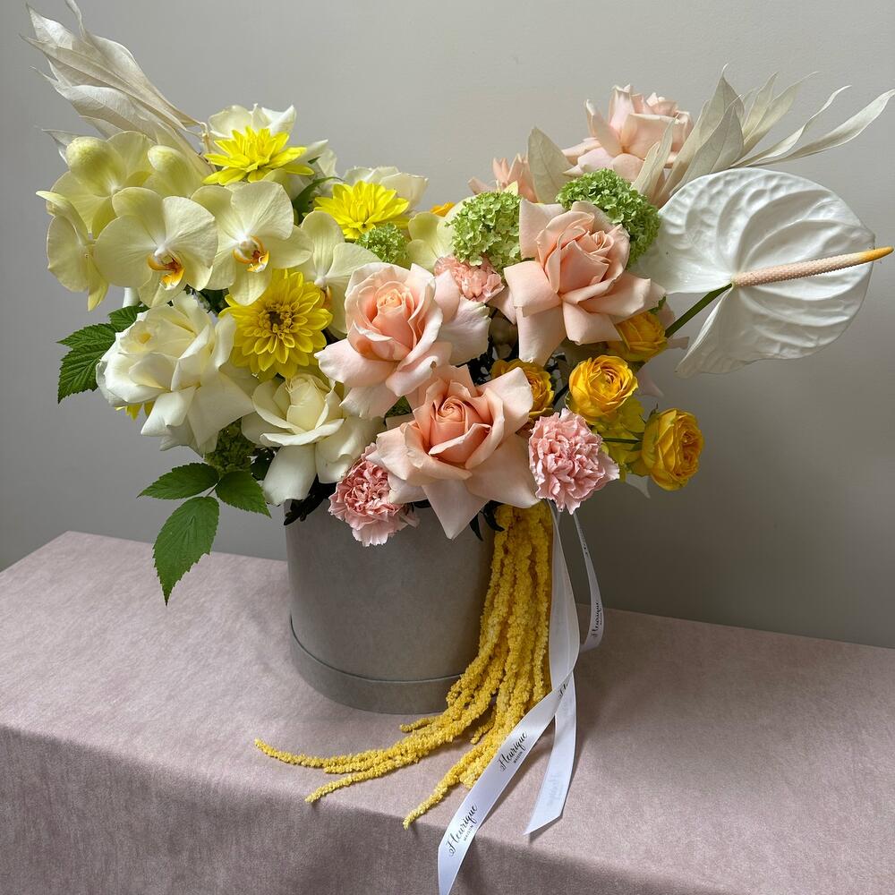 Please note that substitutions may occur due to the availability and seasonality of flowers. We will ensure that your arrangement closely resembles the photo provided. If substitutions are necessary, we will contact you to discuss the details. The color composition may vary from the sample shown. Thank you for your understanding and trust in Fleurique Maison!