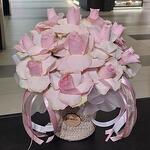 Ribbon - 4 pcs Basket - 1 pcs roses pink mondial - 15 pcs