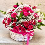 Ruscus - 5 pcs Gypsophila - 10 pcs roses - 25 pcs spray roses - 10 pcs