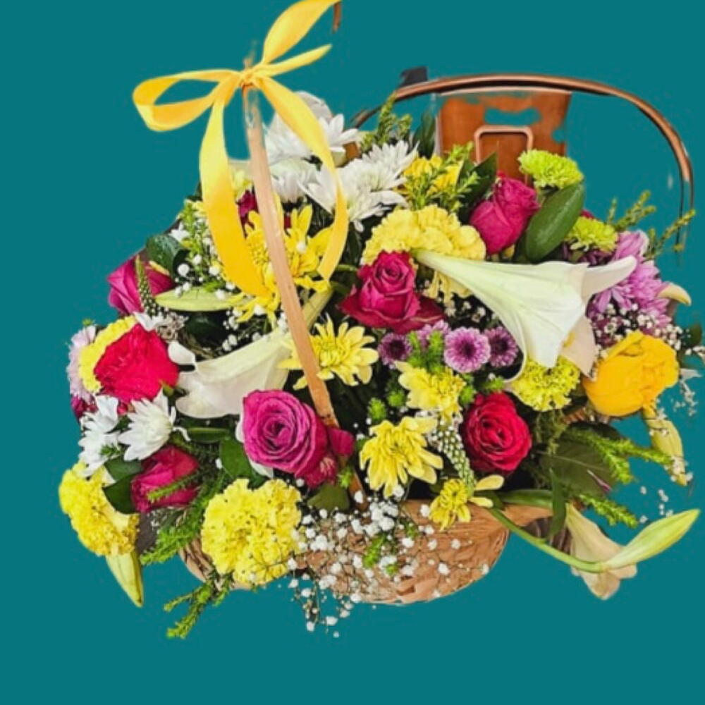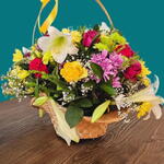 White lilies - 1 pcs cheerful yellow blooms - 1 pcs daisies and pink flowers - 1 pcs