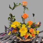 This bouquet is a living and vibrant arrangement that combines the warm tones roses, bright