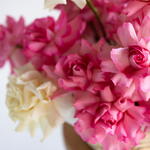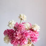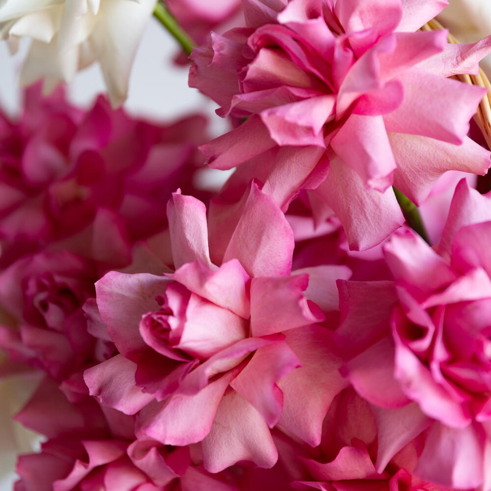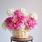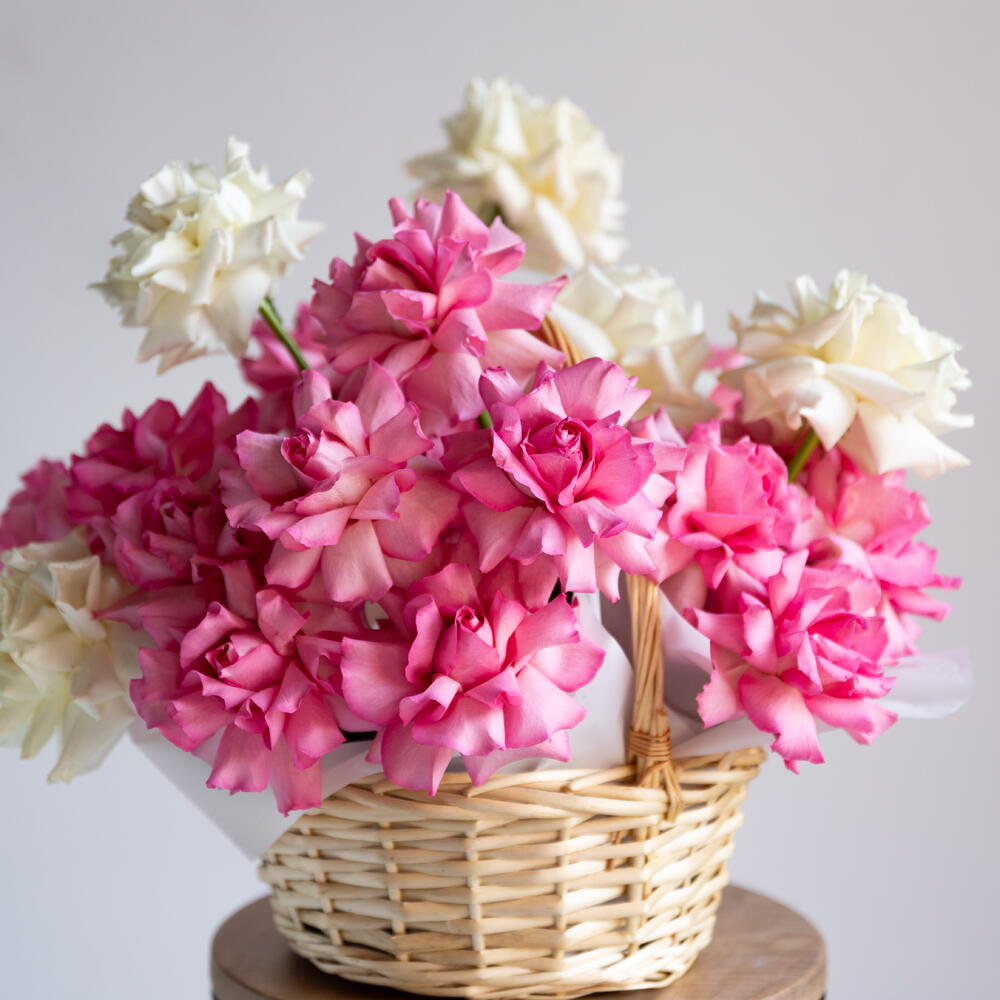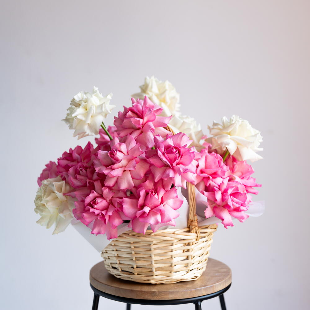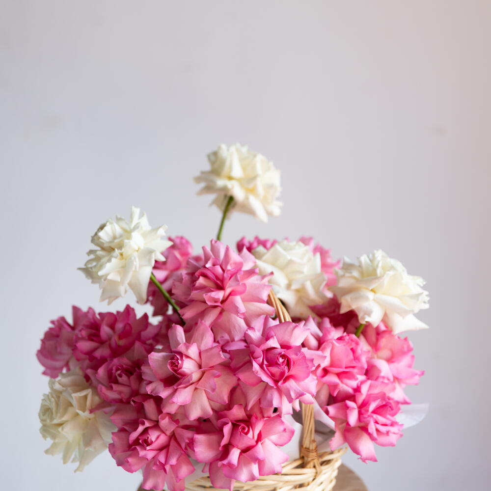 Flowers in basket (white and pink French roses)