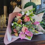 Snapdragon - 5 pcs Lilies - 5 pcs wrapping paper - 2 pcs pink roses - 5 pcs gum - 5 pcs