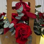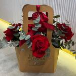 Ribbon - 1 pcs Eucalyptus - 5 pcs paper bag - 1 pcs roses - 5 pcs