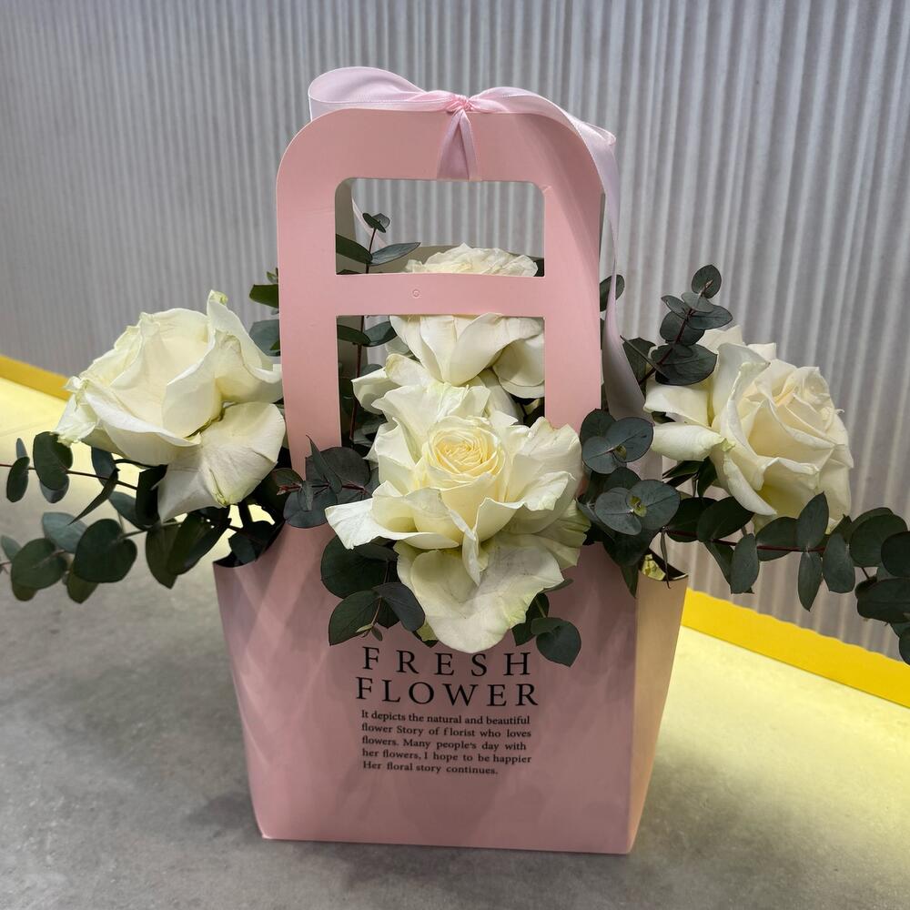 Eucalyptus - 5 pcs paper bag - 1 pcs roses - 5 pcs