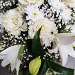 The basis for the wreath - 1 pcs Mondial - 6 pcs The Christmas tree is natural - 5 pcs lillium - 1 pcs kruzanteem - 5 pcs gyosophilia - 5 pcs