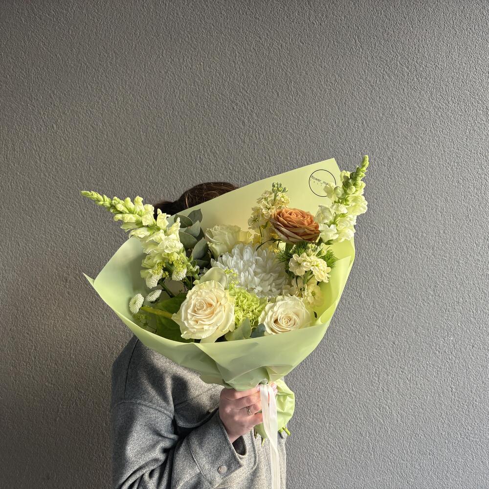 Anthurium - 2 pcs rose - 4 pcs krizantem - 1 pcs levkoi - 2 pcs