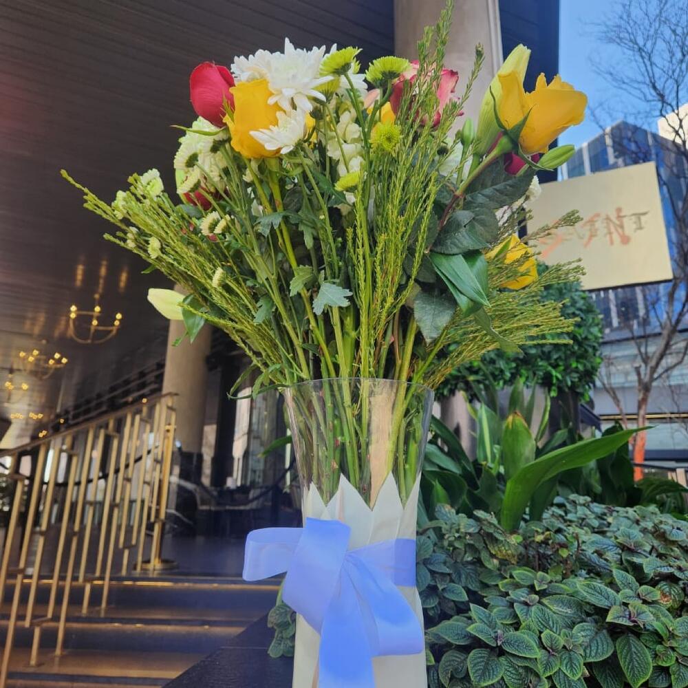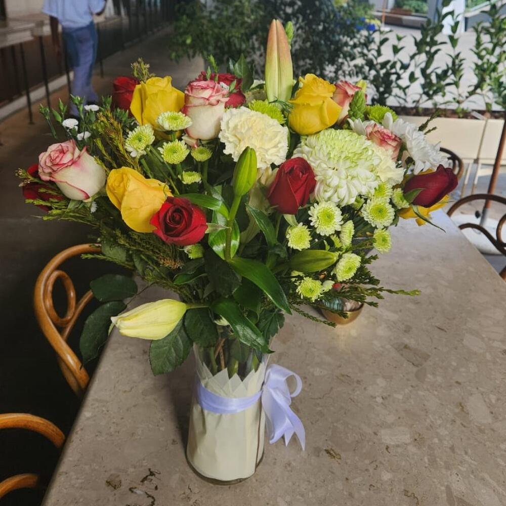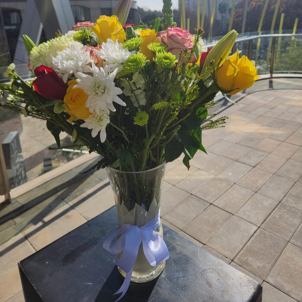 This stunning glass vase arrangement is a celebration of vibrant Colors and natural beauty