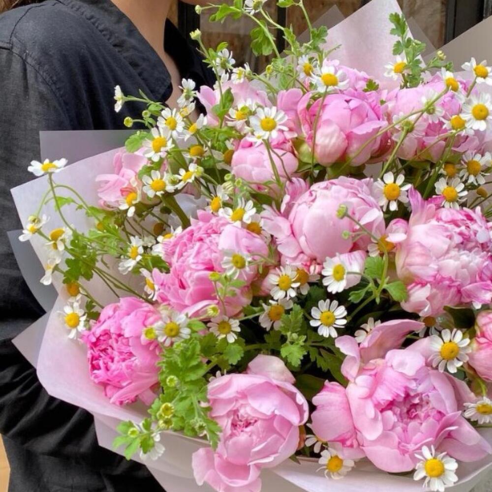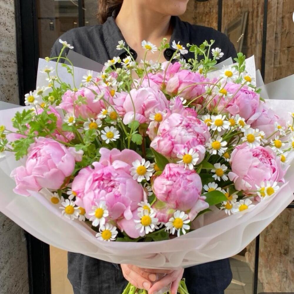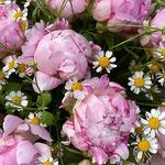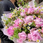 chamomile - 5 pcs packaging - 3 pcs peonies - 15 pcs ribbon satin - 1 pcs
