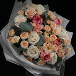 Eucalyptus - 7 pcs Spray rose - 8 pcs garden roses - 13 pcs corean foil - 6 pcs
