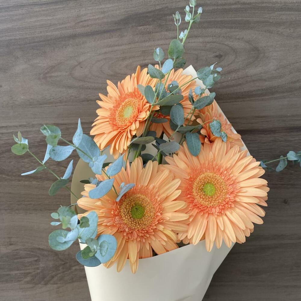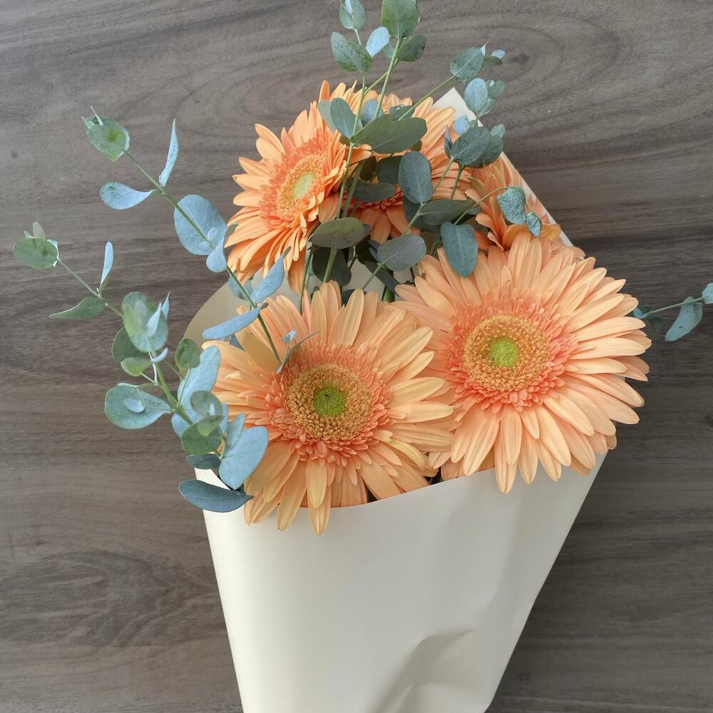 Eucalyptus - 2 pcs Gerbera - 5 pcs paper - 1 pcs