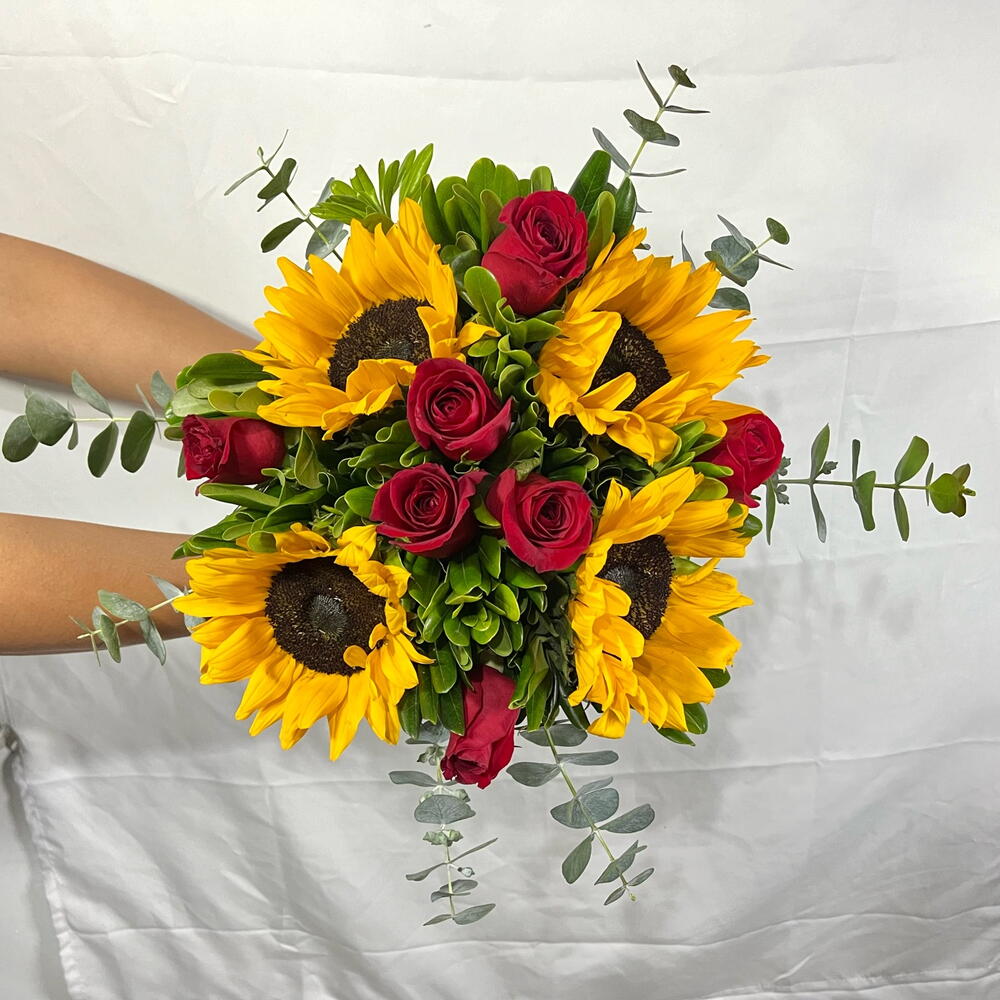 Ramo Pasion de Girasoles – Girasoles con Rosas Rojas