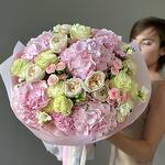 Spray rose - 5 pcs Hydrangea - 5 pcs Freesia - 5 pcs rose - 10 pcs dianthus - 7 pcs