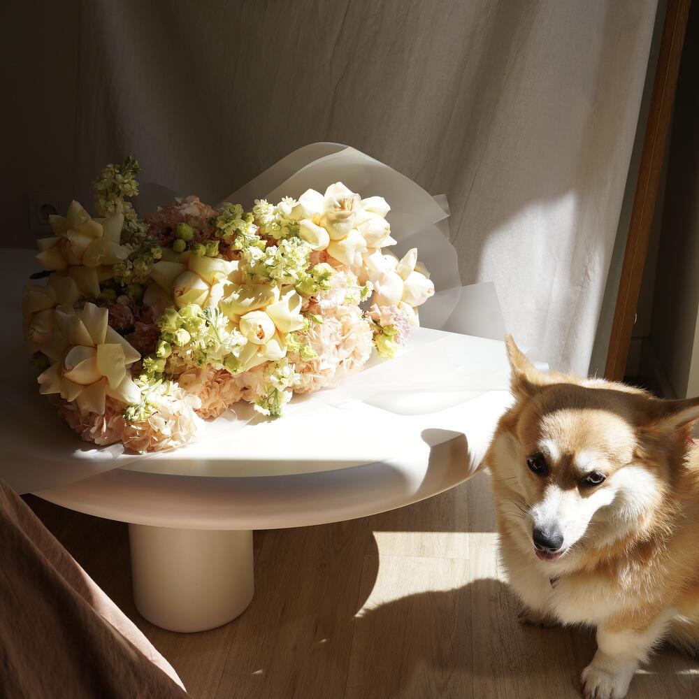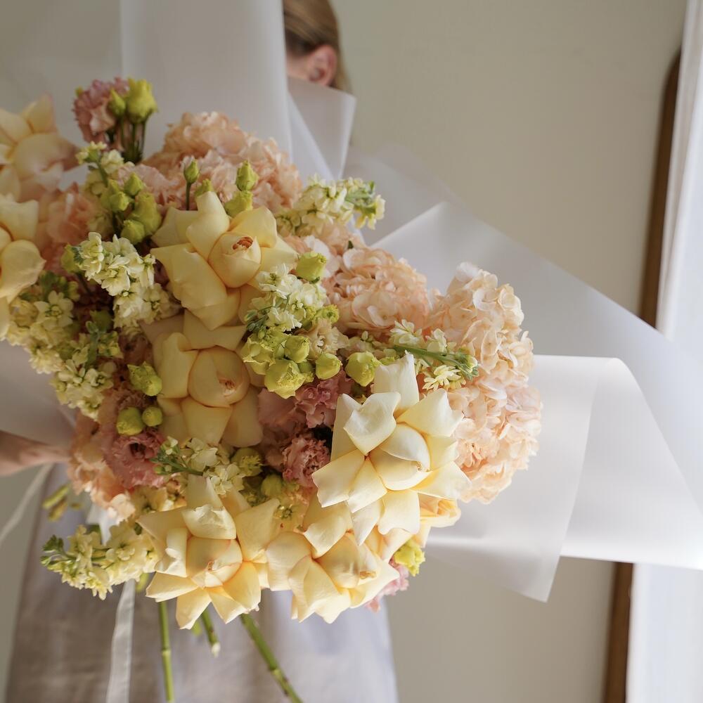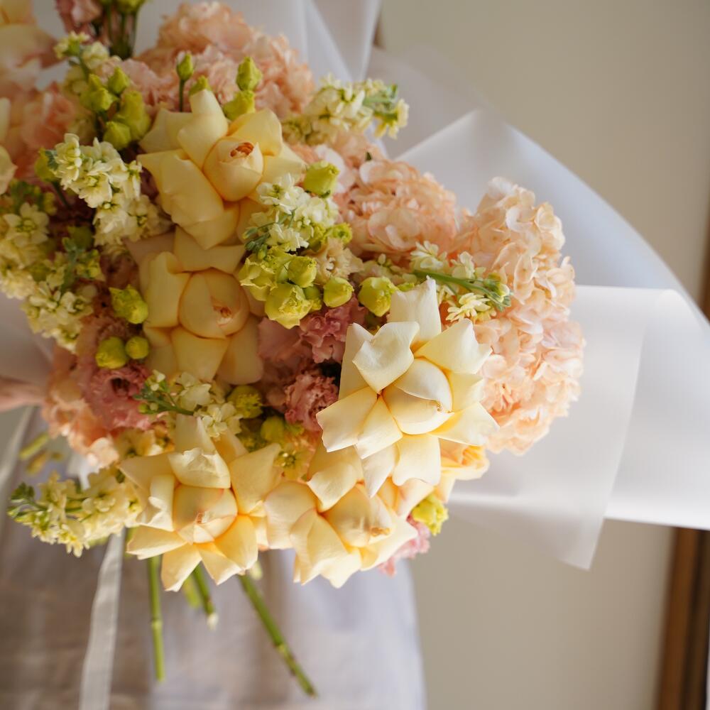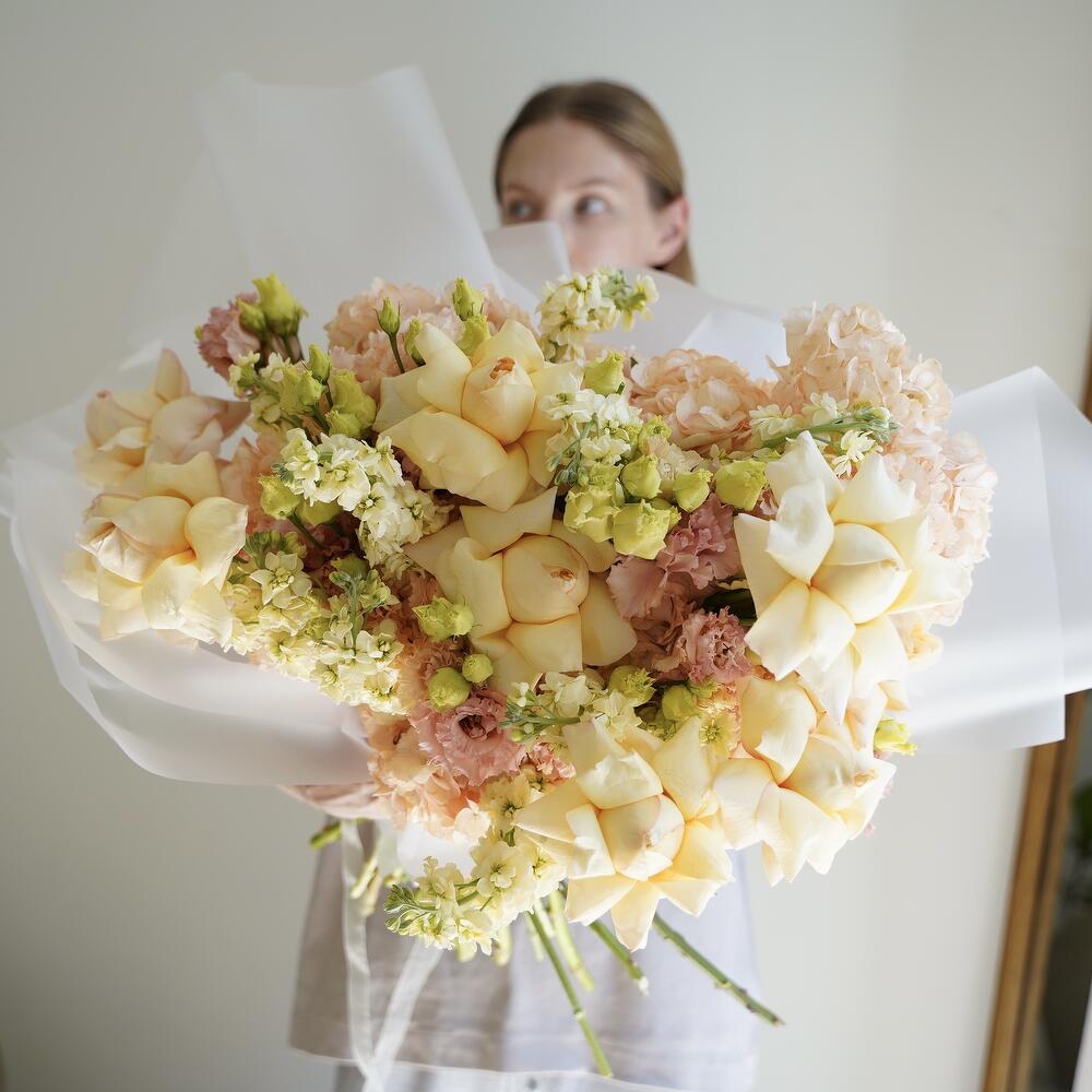 hydrangea - 13 pcs Lisianthus - 12 pcs rose - 10 pcs matthiola - 20 pcs