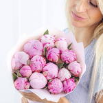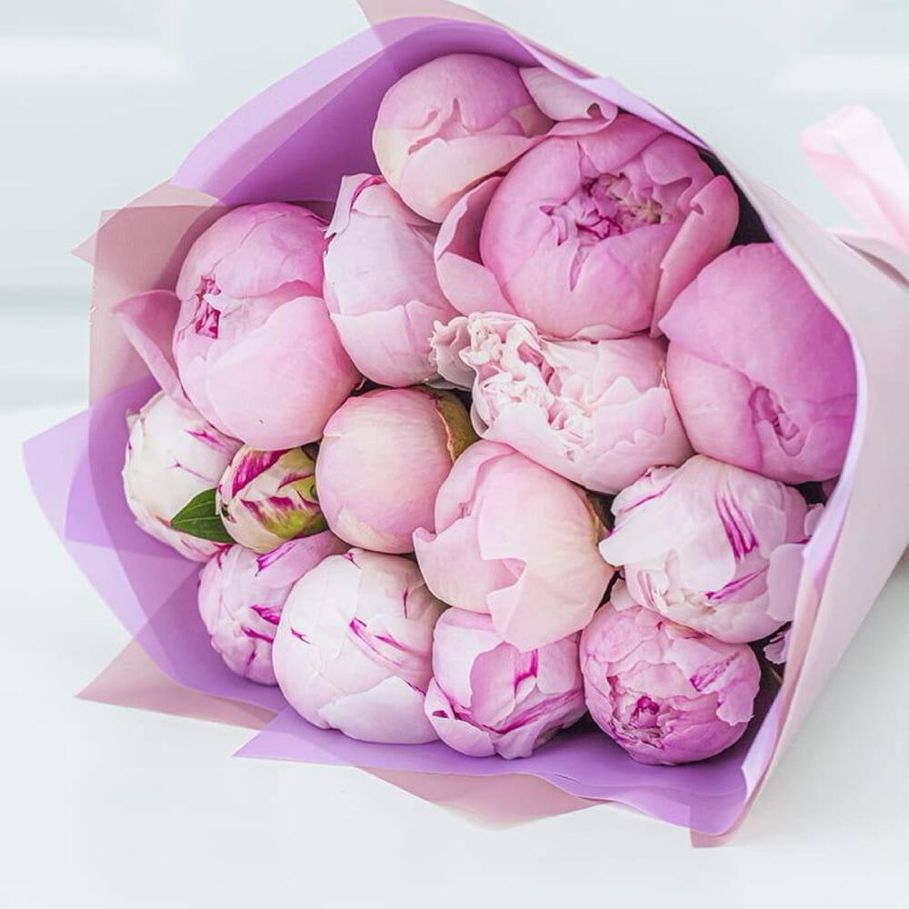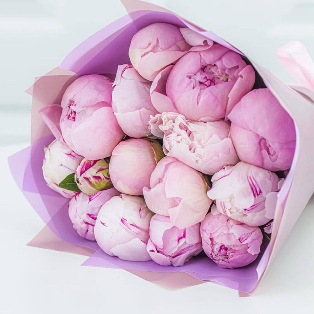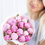 Satin ribbon - 2 pcs Designer packaging - 2 pcs peonies - 15 pcs