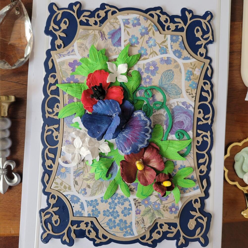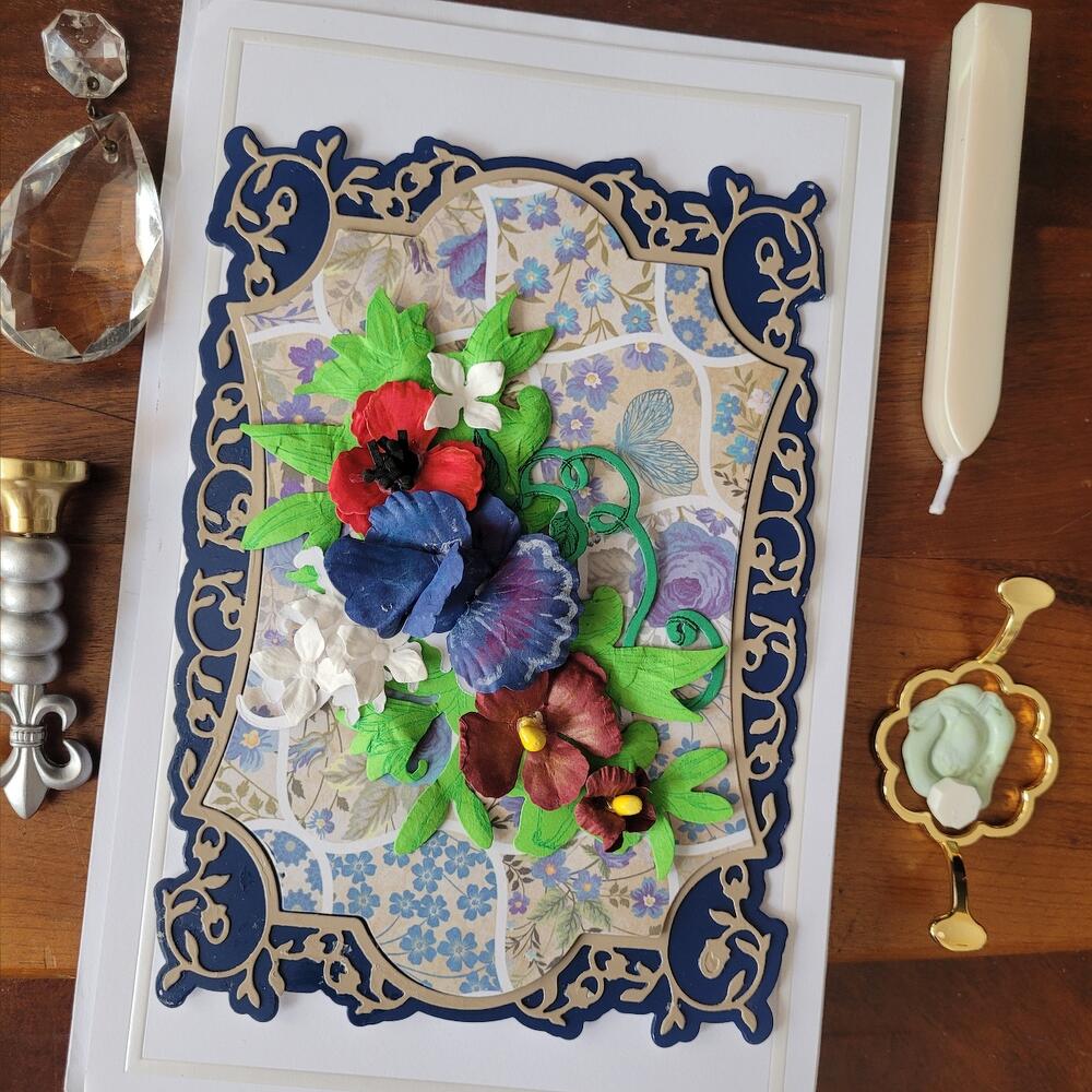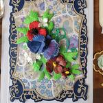 Greeting card navy blue sweet pea and flowers 3D