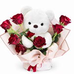 White teddy 35cm with roses