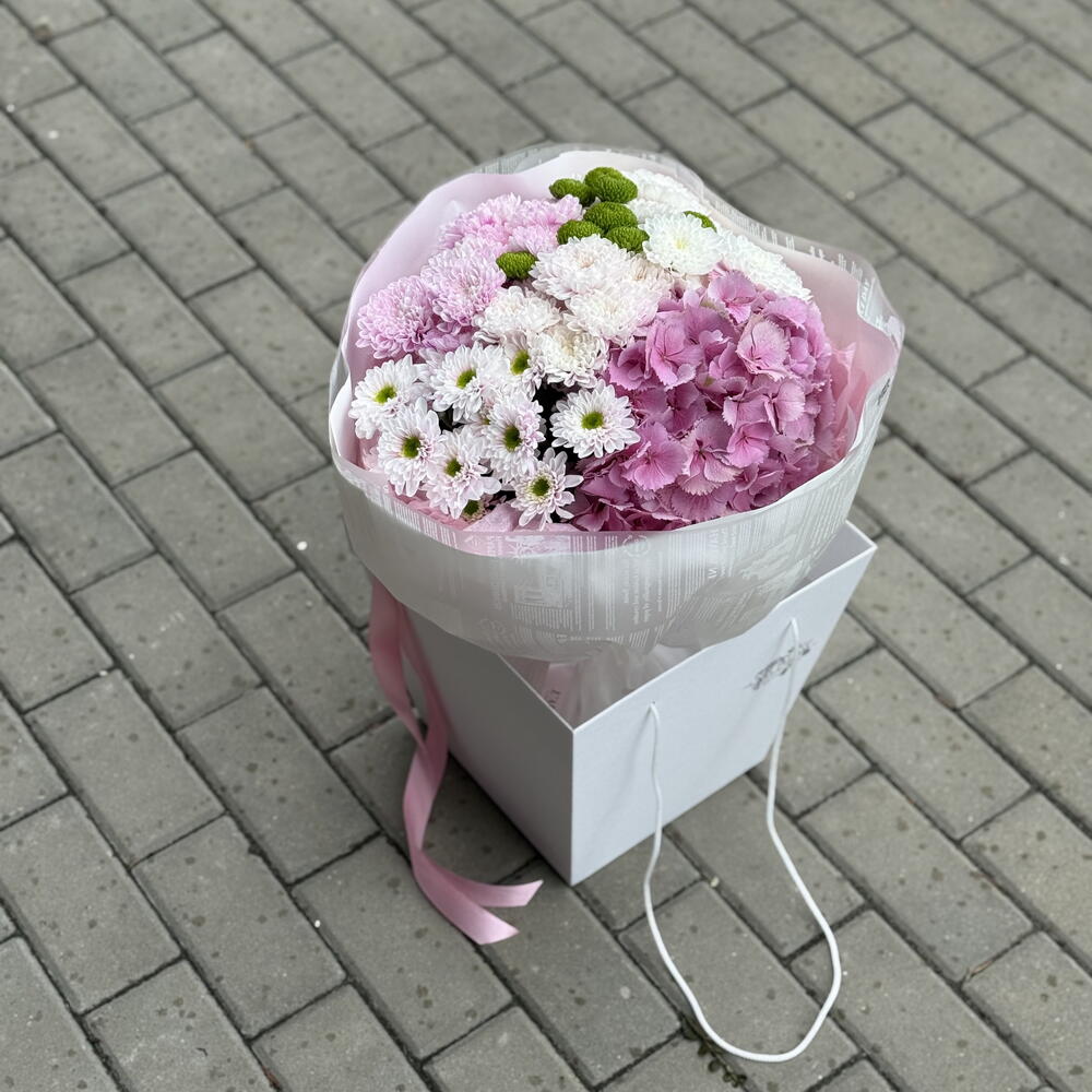 Chrysanthemum - 9 pcs pink hydrangea - 1 pcs
