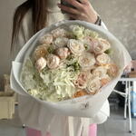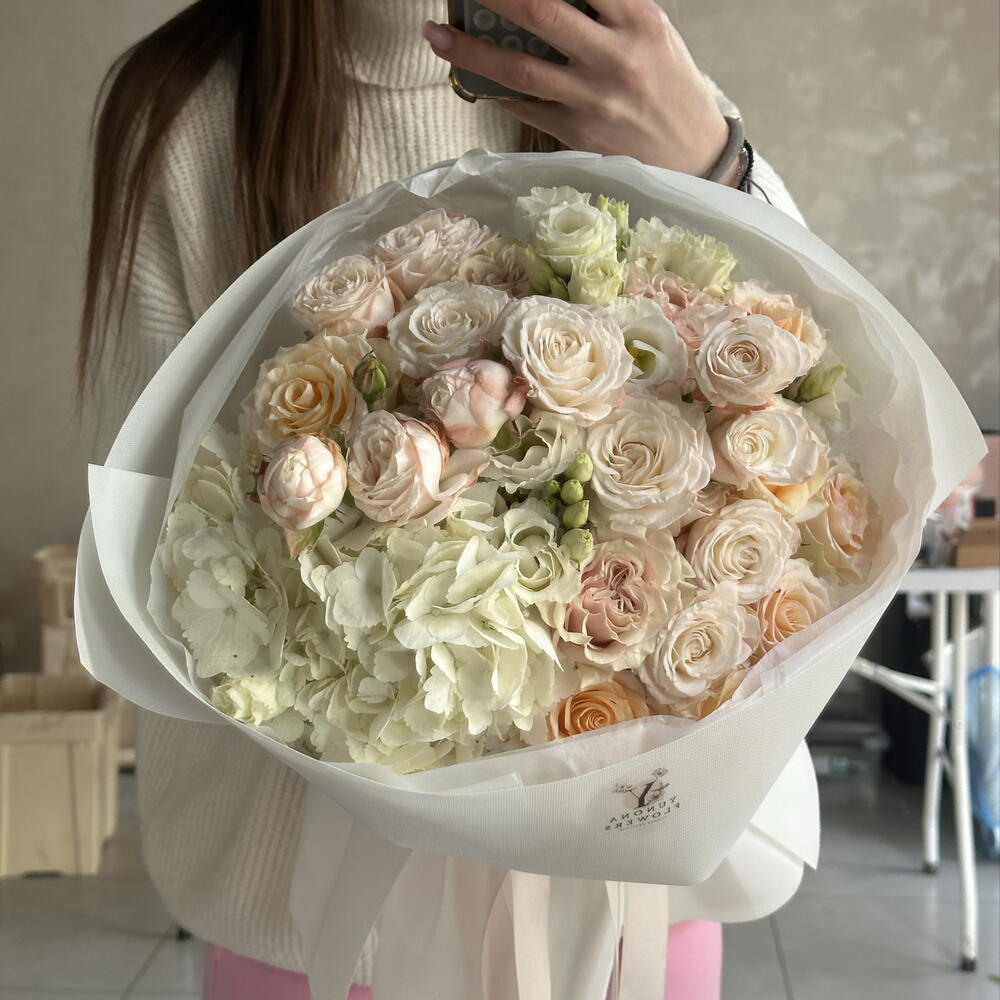 Eustoma - 3 pcs hydrangea - 1 pcs spray roses - 5 pcs