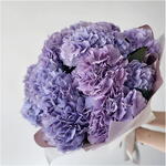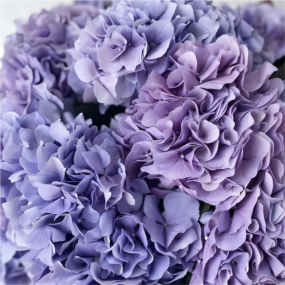 Lush hydrangeas in dreamy shades of lilac and violet create a cloud-like composition that feels both delicate and luxurious. Wrapped in elegant pastel tones and tied with a satin ribbon, this bouquet is perfect for expressing admiration, appreciation, or love in its most refined form. A timeless gift that brings a touch of calm beauty to any