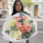 Hydrangea - 3 pcs Eucalyptus - 3 pcs bush roses - 3 pcs