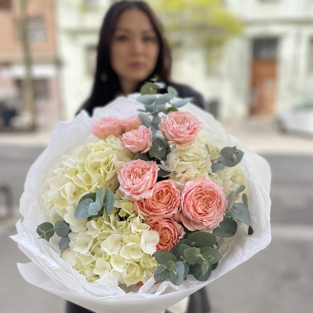 Hydrangea - 3 pcs Eucalyptus - 3 pcs bush roses - 3 pcs