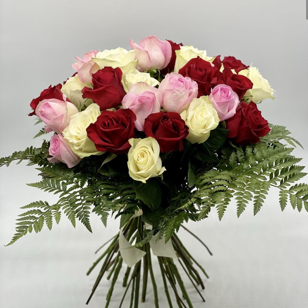 Red rose - 9 pcs White rose - 9 pcs pink roses equator - 9 pcs