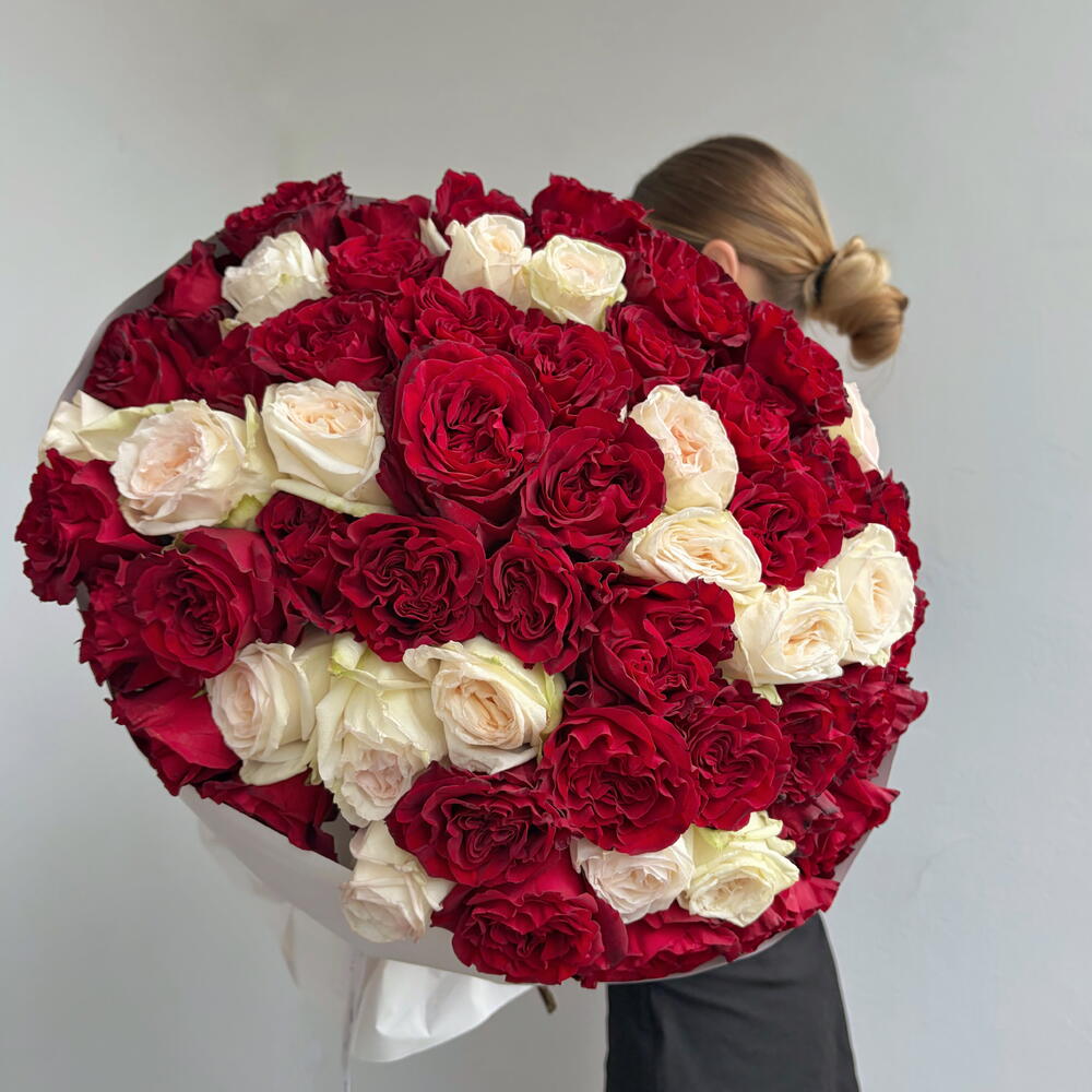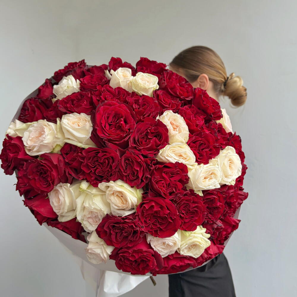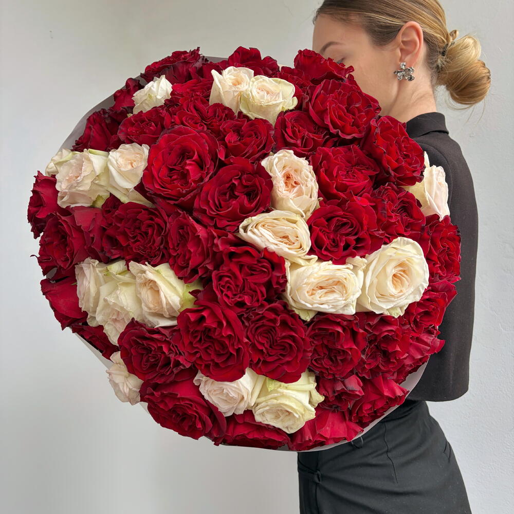 Kiss Attack is a romantic Valentine’s Day bouquet featuring fragrant white O’Hara roses paired with a premium red rose heart. Elegant and passionate, it’s a perfect choice for February 14. Each bouquet includes an aqua box, branded transport bag, a free greeting card, and a Polaroid photo of the bouquet. Only on February 14, we can print any photo of you and your loved one on a Polaroid — just message us and send your photo. Every Valentine’s Day order includes a sweet gift from FLOW, to keep love sweet and on fire.