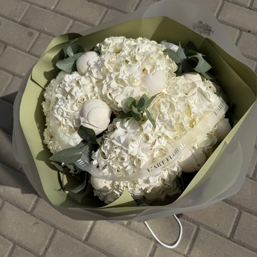 peonies - 9 pcs eucalyptus - 5 pcs hydrangea - 3 pcs