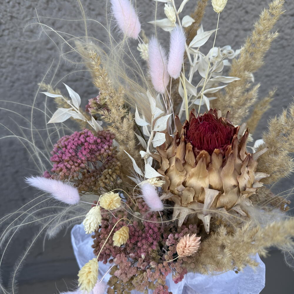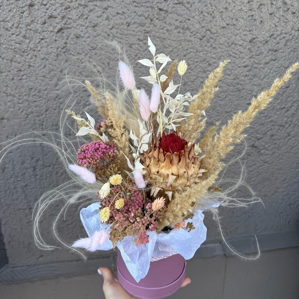 Ruskus - 1 pcs lagurus - 5 pcs box - 1 pcs grass - 1 pcs artichoke - 1 pcs